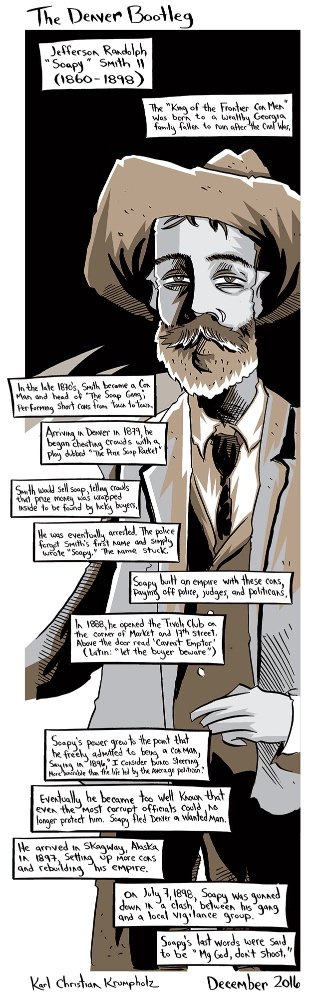 Award-winning cartoonist Karl Christian Krumpholz’s work has appeared in many different publications and even a documentary. He is currently working on two weekly comics: The Denver Bootleg, which examines local musical history for Denver’s Westword, and 30 Miles of Crazy! – the true-ish tales of the various lives in the city. Karl is always looking for a better place to get a drink. His latest comic, An Introduction to Alcohol, compiles a storyline originally featured in 30 Miles of Crazy! and won Best in Show at the 2017 Denver Comic and Arts Expo (DINK). Karl can always be found at karlchristiankrumpholz.com