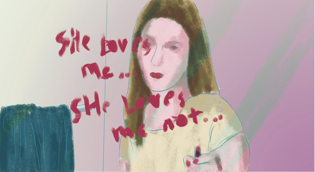 “She loves me. She loves me not. She loves me. She loves me not.”